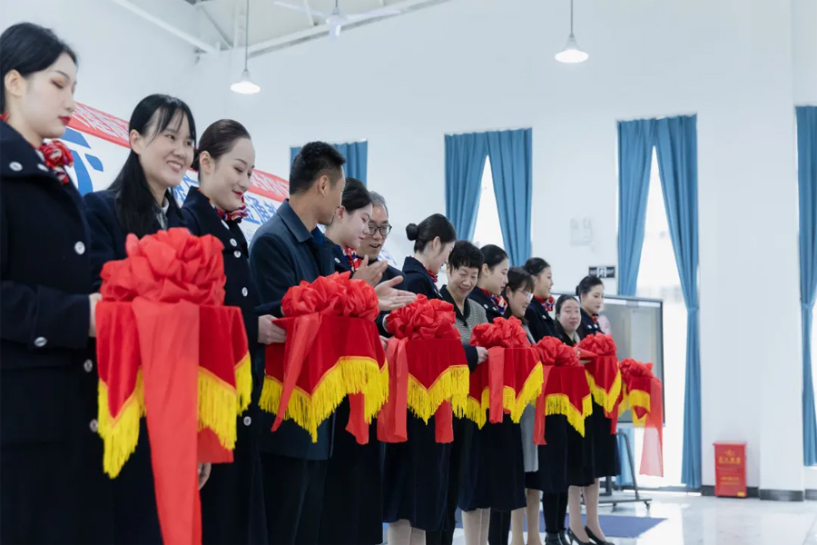 儀式還安排了模擬艙現(xiàn)場體驗(yàn),由空乘專業(yè)學(xué)生為大家提供客艙服務(wù)、進(jìn)行安全演示。剪彩儀式后,空乘專業(yè)學(xué)生還表演了手語舞“國家”,感恩祖國、祝福祖國。