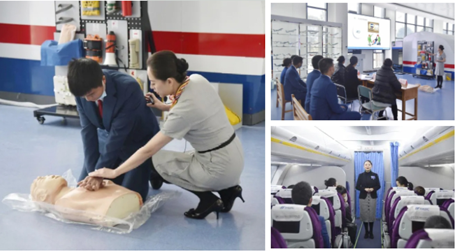 所有參賽老師無畏寒冬砥礪備戰(zhàn),仍以飽滿的熱情投入到比賽當(dāng)中,老師們分別對(duì)心肺復(fù)蘇情境、客艙釋壓等進(jìn)行演示,針對(duì)機(jī)內(nèi)發(fā)現(xiàn)爆炸物的處置方法、救生衣穿戴方法、艙內(nèi)服務(wù)標(biāo)準(zhǔn)等進(jìn)行詳細(xì)講解。參賽老師們的精彩解說、優(yōu)美儀態(tài)不僅為到場評(píng)委嘉賓呈現(xiàn)了一場視覺盛宴,也展示了空中乘務(wù)專業(yè)應(yīng)掌握的各項(xiàng)專業(yè)知識(shí)和素養(yǎng)。