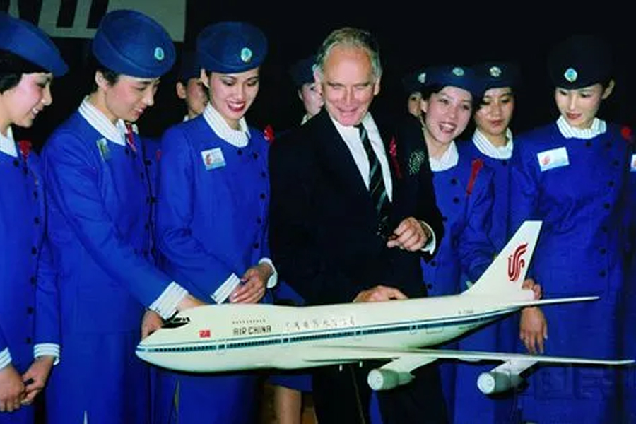 法國著名時裝設計師皮爾·卡丹設計的國航第一代空乘制服