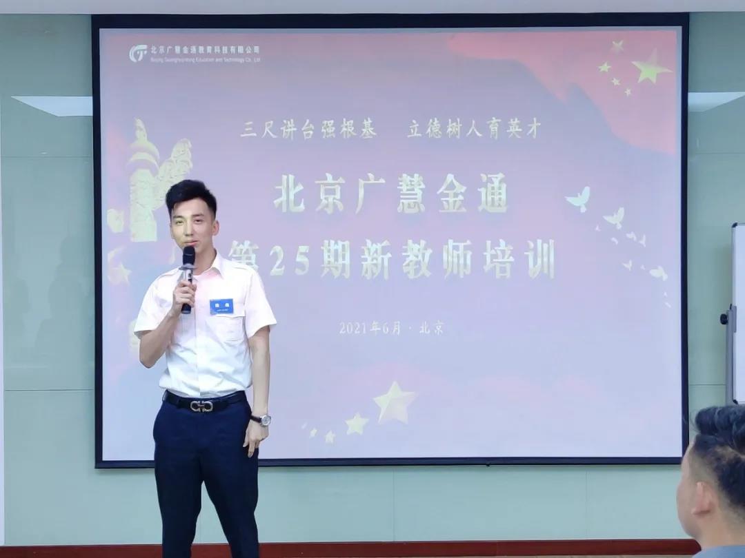 喜迎中國(guó)共產(chǎn)黨百年華誕之際,北京廣慧金通教育科技有限公司不忘教育初心,為大力加強(qiáng)師德師風(fēng)建設(shè),全面養(yǎng)成新教師良好的職業(yè)行為習(xí)慣,有效提升教師能力素質(zhì)和教育教學(xué)水平,北京廣慧金通教育科技有限公司于2021年6月24日——7月9日期間,開(kāi)展以“三尺講臺(tái)強(qiáng)根基,助夢(mèng)藍(lán)天育英才”為主題的新教師培訓(xùn)。