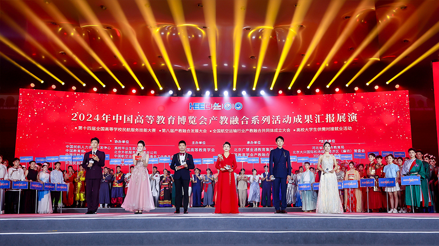 7月24日晚,2024年中國高等教育博覽會產(chǎn)教融合系列活動(以下簡稱系列活動)在廊坊國安第一城圓滿閉幕。來自教育界、民航業(yè)、國內(nèi)外高校和招聘單位的領(lǐng)導(dǎo)和專家,百余家新聞媒體以及來自全國85所高校師生代表等2000余人參加閉幕式暨成果匯報展演。